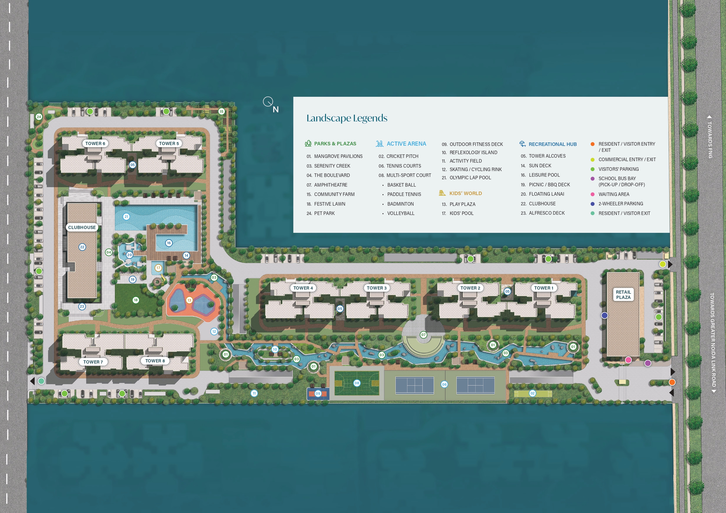 Cradled by the rivulet that inspired its name, SOBHA Rivana is a self-sustaining community, enveloped by lushness and conveniences. Eight majestic towers, the tallest in the neighbourhood, and a retail enclave redefine Greater Noida’s skyline. Curated indulgences such as a 35,000 sq. ft. clubhouse, along with immersive realms, bring to life A World above the Rest.